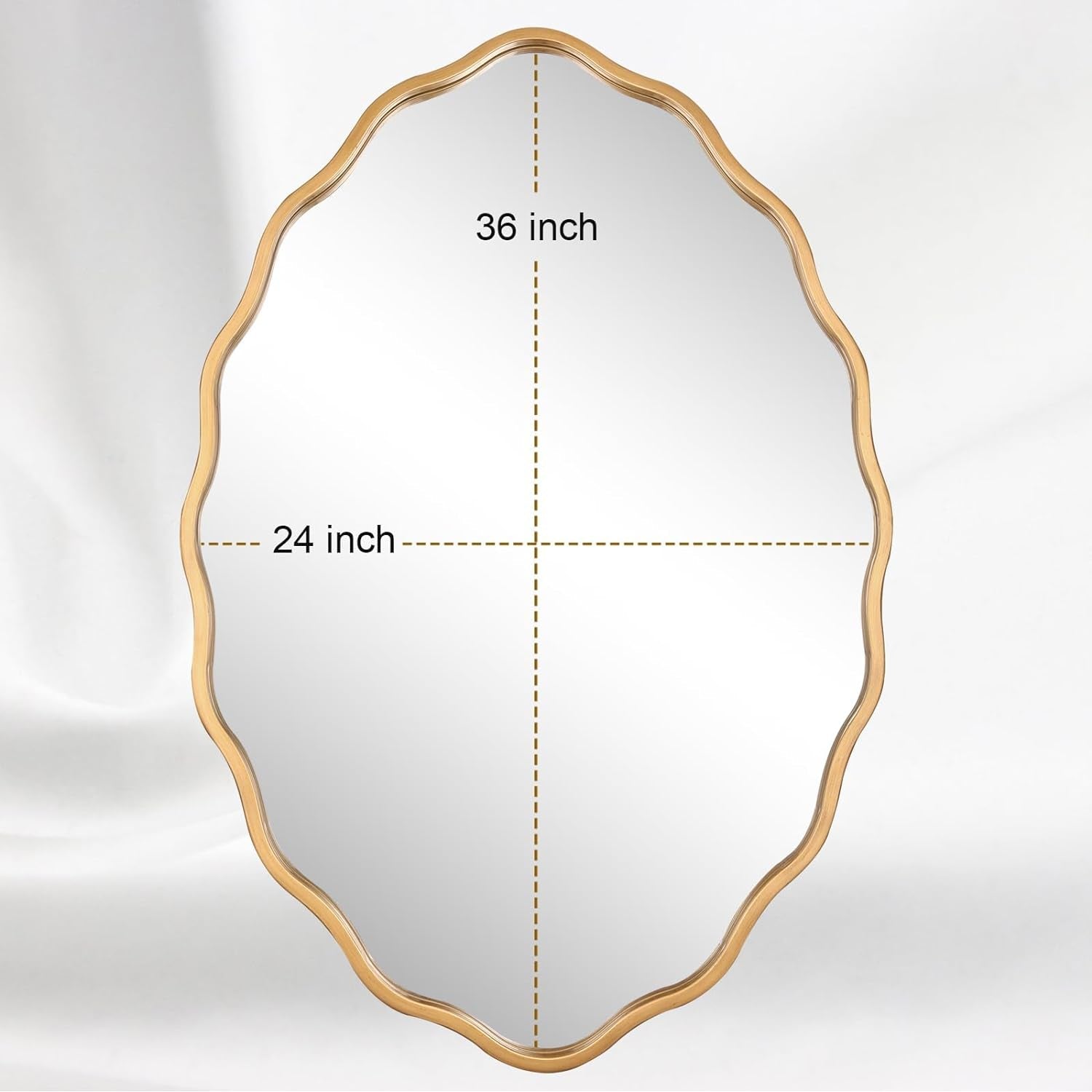 - With Wavy design,Brushed Gold framed mirror looks elegant and soft.Good corrosion resistance and wear resistance.