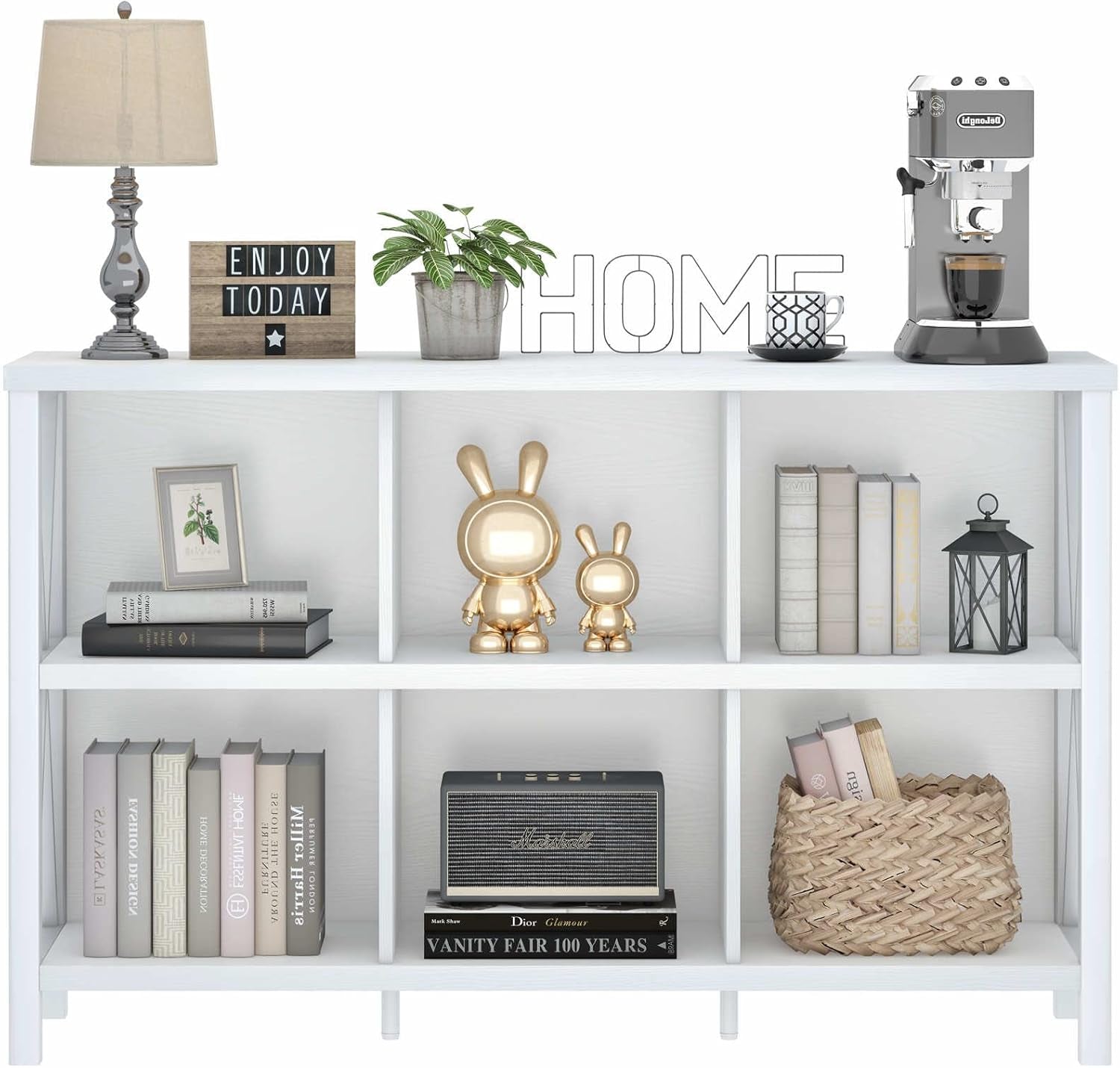 We use 1 Inch thickness chunky table top and shelves to ensure this 6 cube storage bookcase a strong construction.