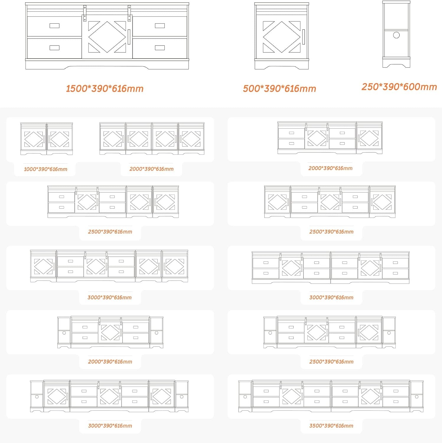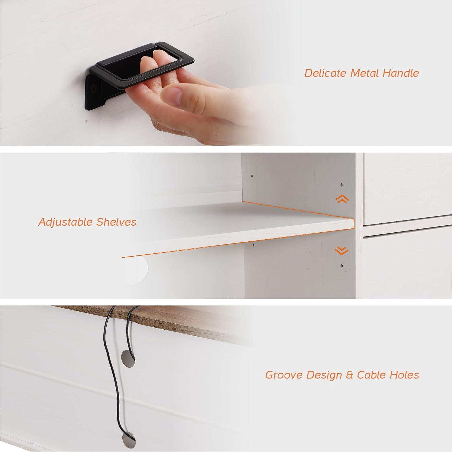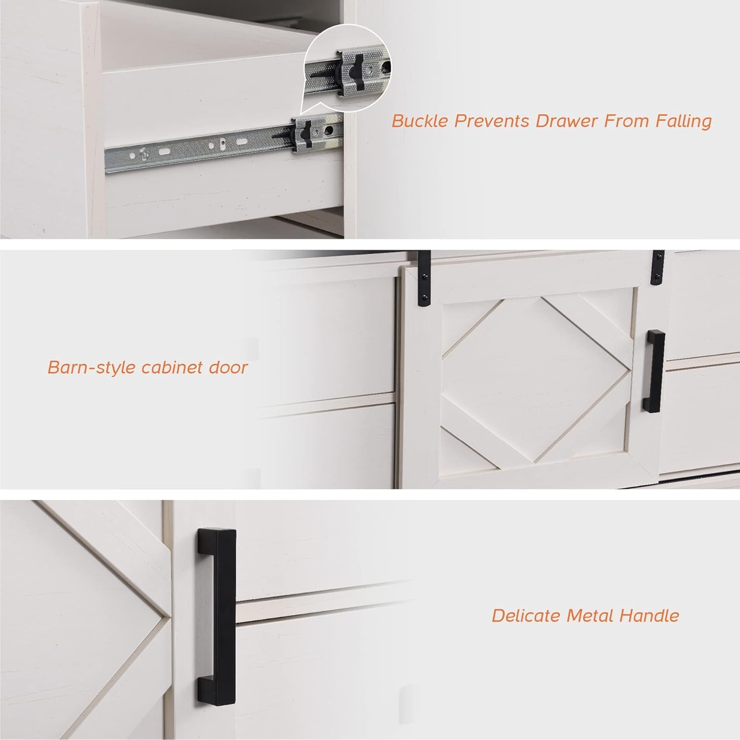 - Multifunctional Storage: Equipped with a sliding barn door, adjustable shelves, and 4 spacious drawers, ideal for storing DVDs, games, and decorative items.