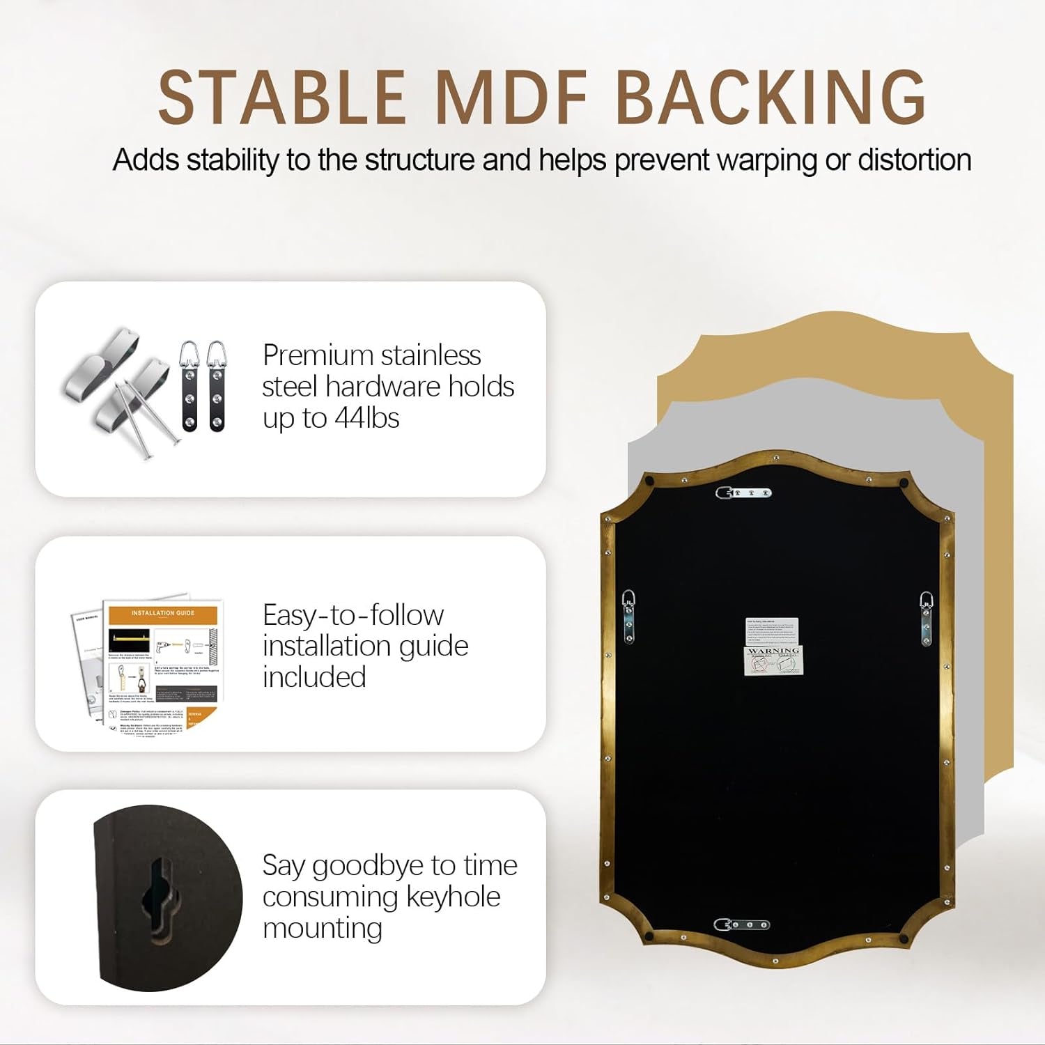 - Extended 1-year Warranty: With over 20 years of mirror production experience, we ensure that our vintage gold mirror is exquisitely crafted. In the rare event of this gold antique mirror arriving damaged or chipped, no return is required. Simply send us photos, and we'll provide a satisfactory solution within 24 hours.