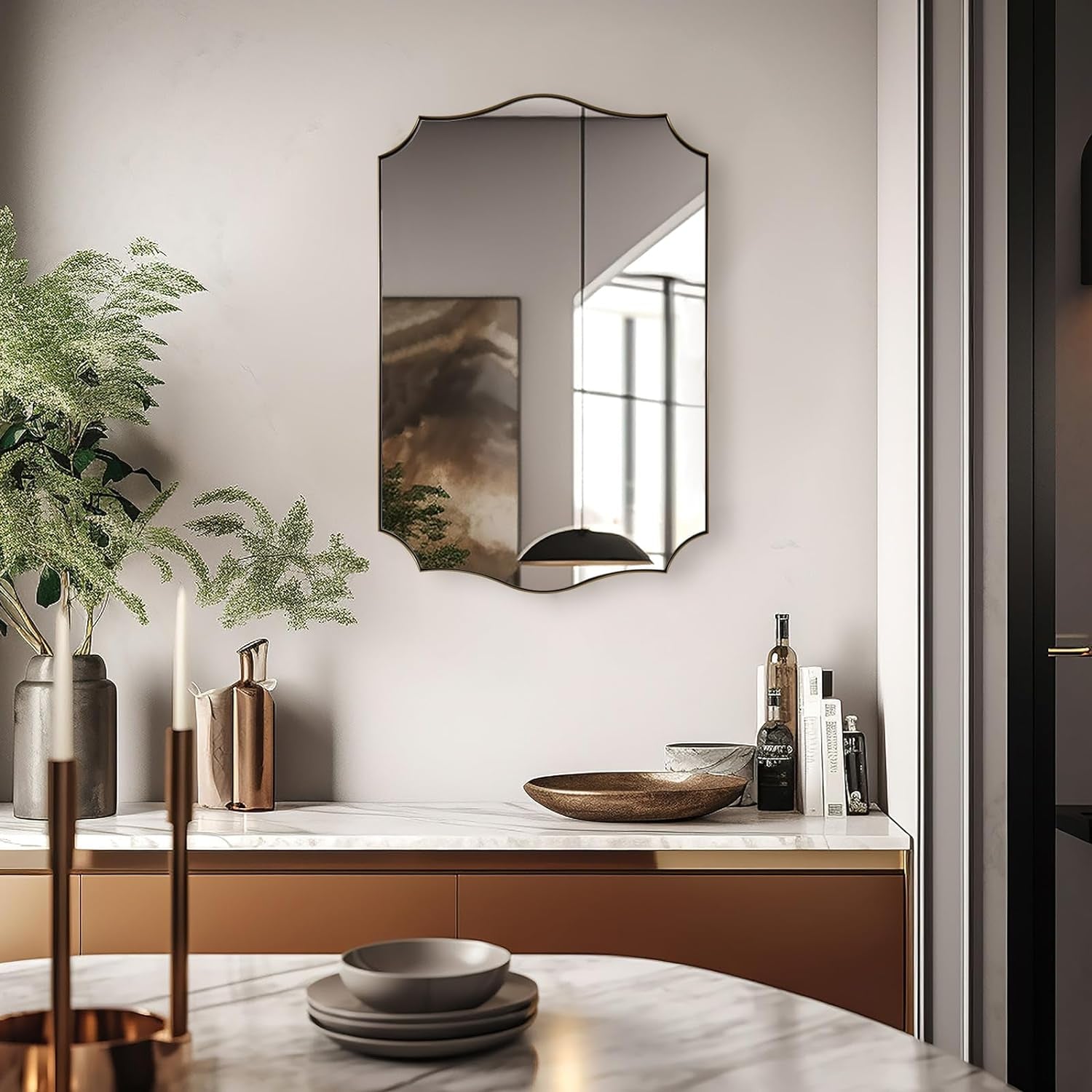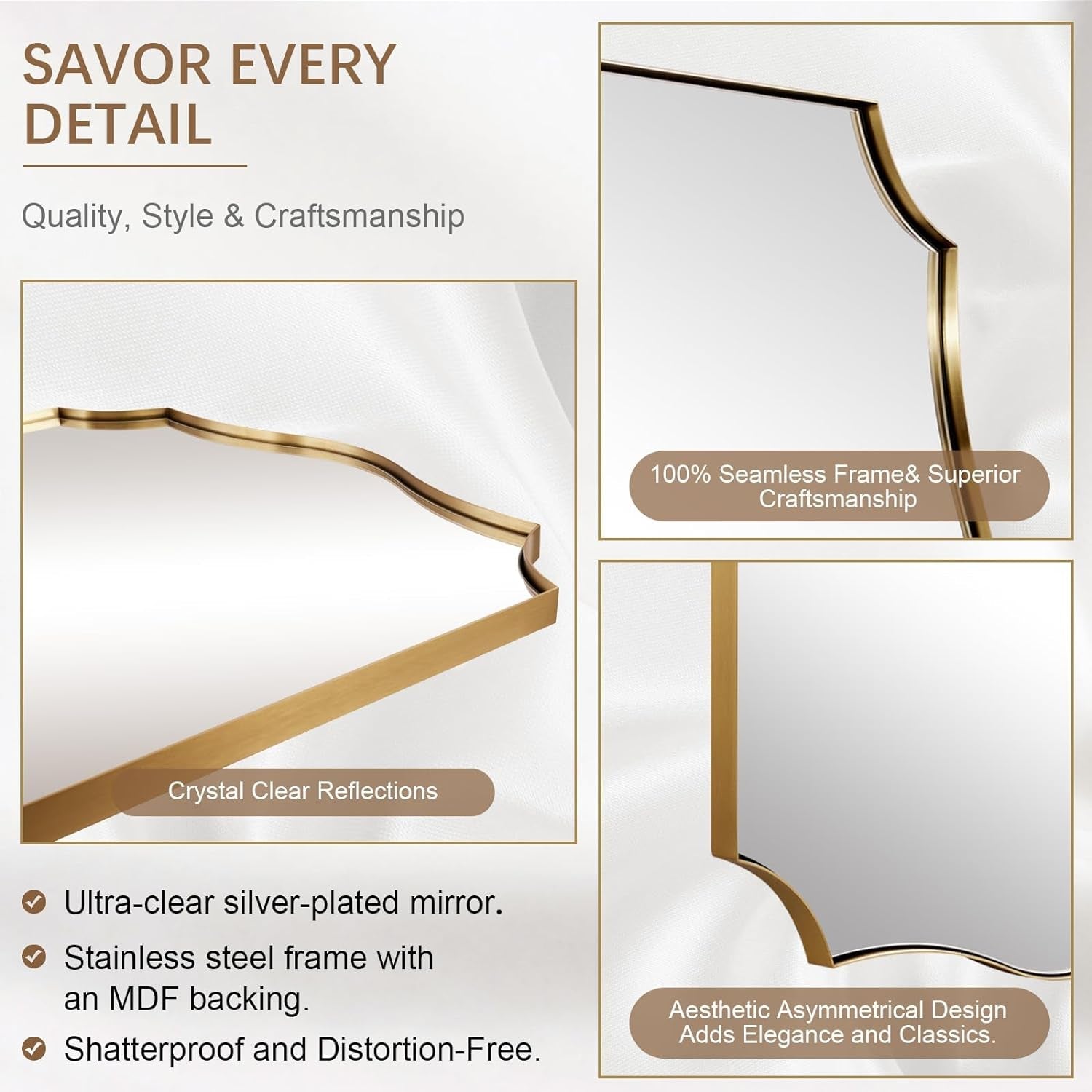 - Unique Asymmetrical Design: With captivating asymmetry and irregular shapes, this brushed gold vanity mirror is a work of art. Whether you have a contemporary, minimalist, rustic, or eclectic bathroom decor, our irregular wall mirror effortlessly blends in, adding a touch of individuality and character to any space.
