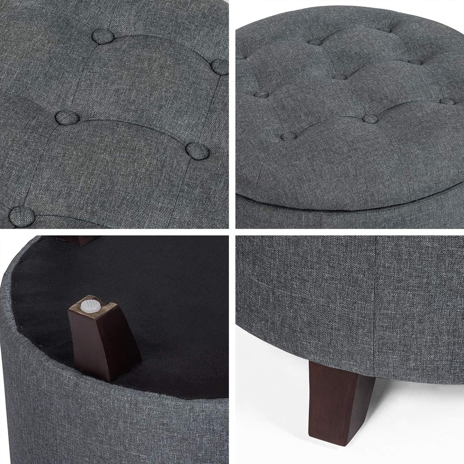 Make a bold statement with the Designs4Comfort Round Storage Ottoman by Convenience Concepts. This transitional ottoman adds stylish functionality to any room in your home. Perfect for small spaces, this ottoman can be paired with your favorite sofa chair or used as a beautiful decorative accent piece. The lid’s dense foam cushion offers maximum comfort when being used as a footrest. Store a blanket and more in this multi-use piece that features a removable lid for concealed storage. The top of the ottoman lid showcases fine stitching and luxurious button tufting for a neat and firm finish. The frame of this chic footstool is built from solid and manufactured wood and is upholstered in a variety of rich finishes to choose from. The sturdy legs are also crafted from solid rubberwood, so this transitional piece is sure to last. Assembly after delivery is easy with only the feet needing attachment. Complete your modern home design today with the Designs4Comfort Round Accent Storage Ottoman from Convenience Concepts.