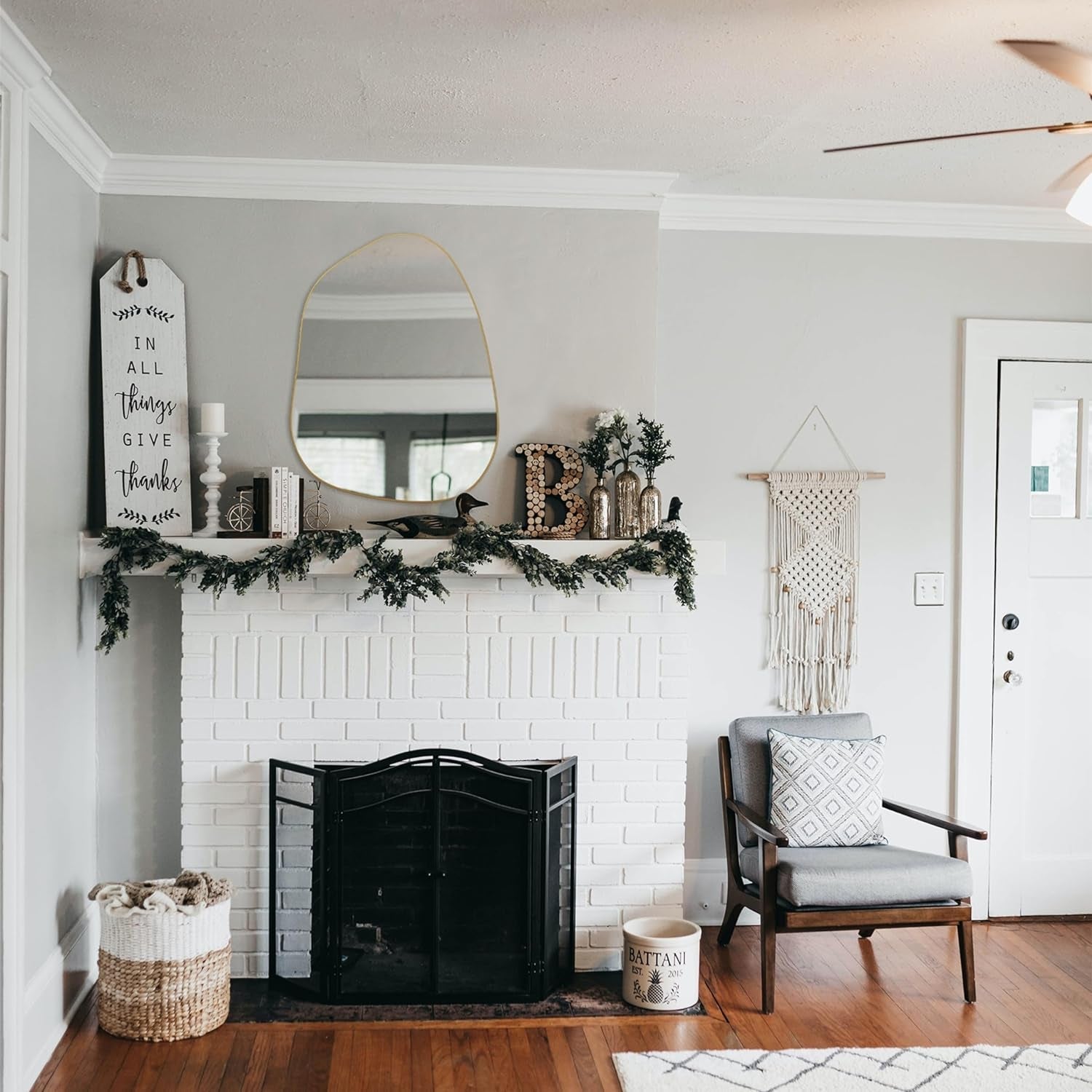 - 【Easy To Install】This irregular wood frame mirror with 8 hooks, and is equipped with all the necessary mounting accessories. Simply drill two holes, secure the screws, and hang the gold mirror effortlessly.