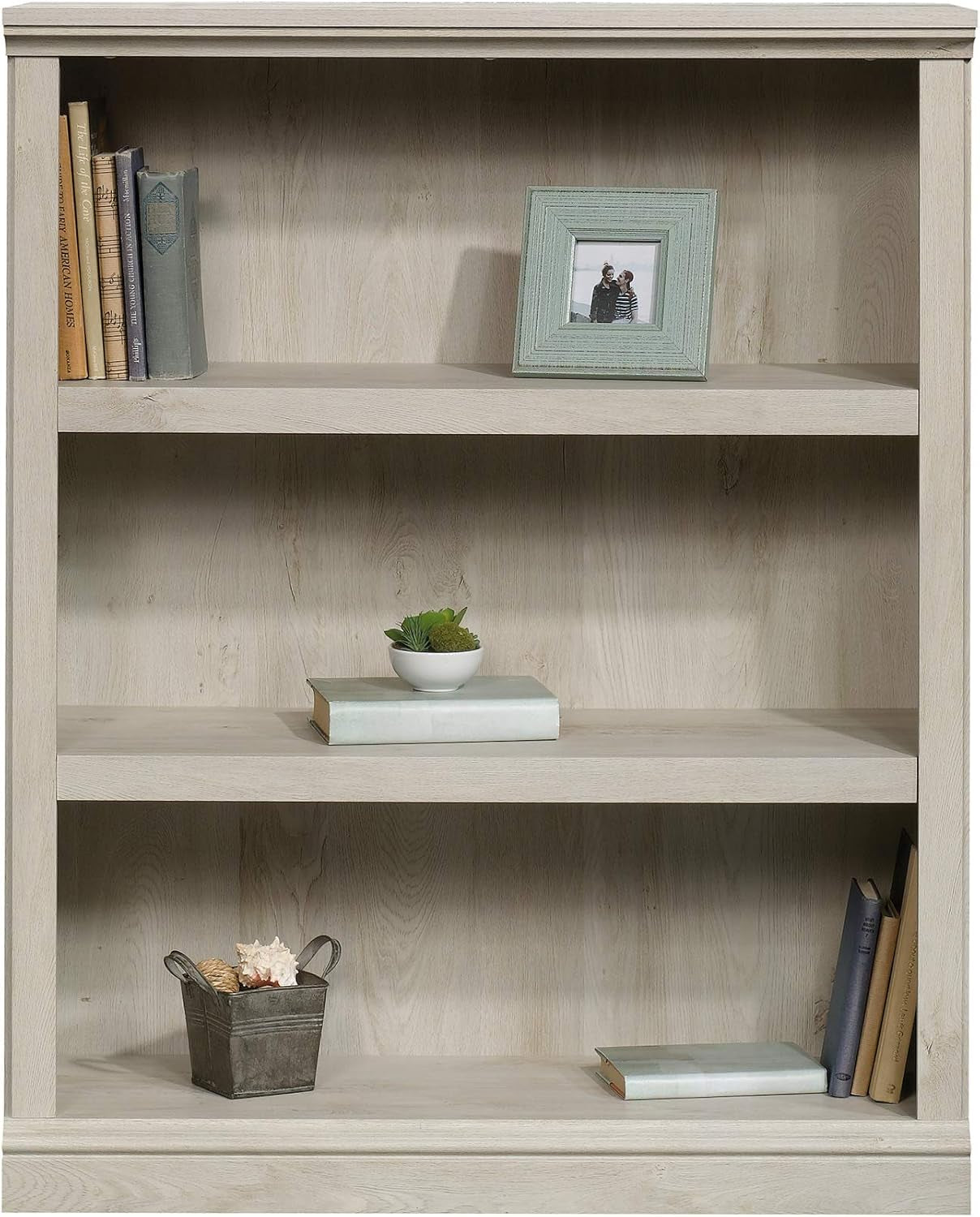 Craving a little extra storage space in your home? Check out this beautiful 3-shelf bookcase from the Sauder Select collection. It offers the ideal amount of space while adding a touch of charming style. It features two adjustable shelves for you to modify and move to different heights to accommodate any small, large, or misshaped items you may have. Its three spacious shelves make the perfect spot to store and display anything from board games and your collection of books to decorative plants and your most prized possessions. Its large top surface also makes a great area to display an accent lamp and your favorite smelling candle. This handsome bookcase looks good no matter where it stands – in the living room, down the hallway, the entryway, or even in the bedroom! It has so much to offer! Finished in Chalked Chestnut®, this good-looking bookcase will have your home looking stylish and organized in no time.