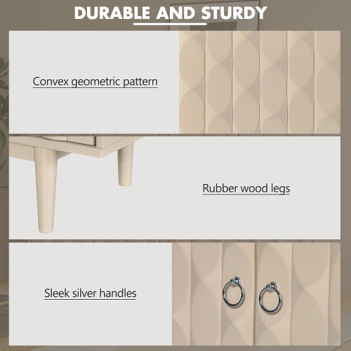 TREXM Modern 4-Door Sideboard with Convex Door and 2 Silver Handles for Living Room, Dining Room, Kitchen (Almond)