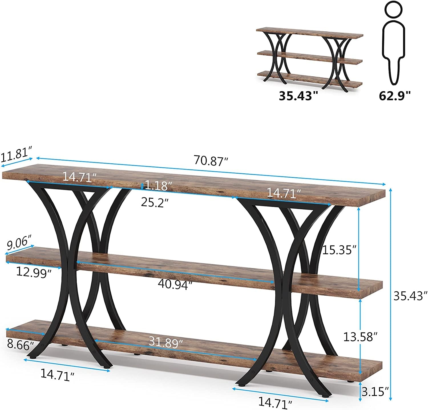 - Storage Shelves: 3 tier shelves provide enough room for displaying framed photos, plants, books and home simple decors and so on. Long narrow table design makes it easily tucks into your entryway hallway for daily small items storage.