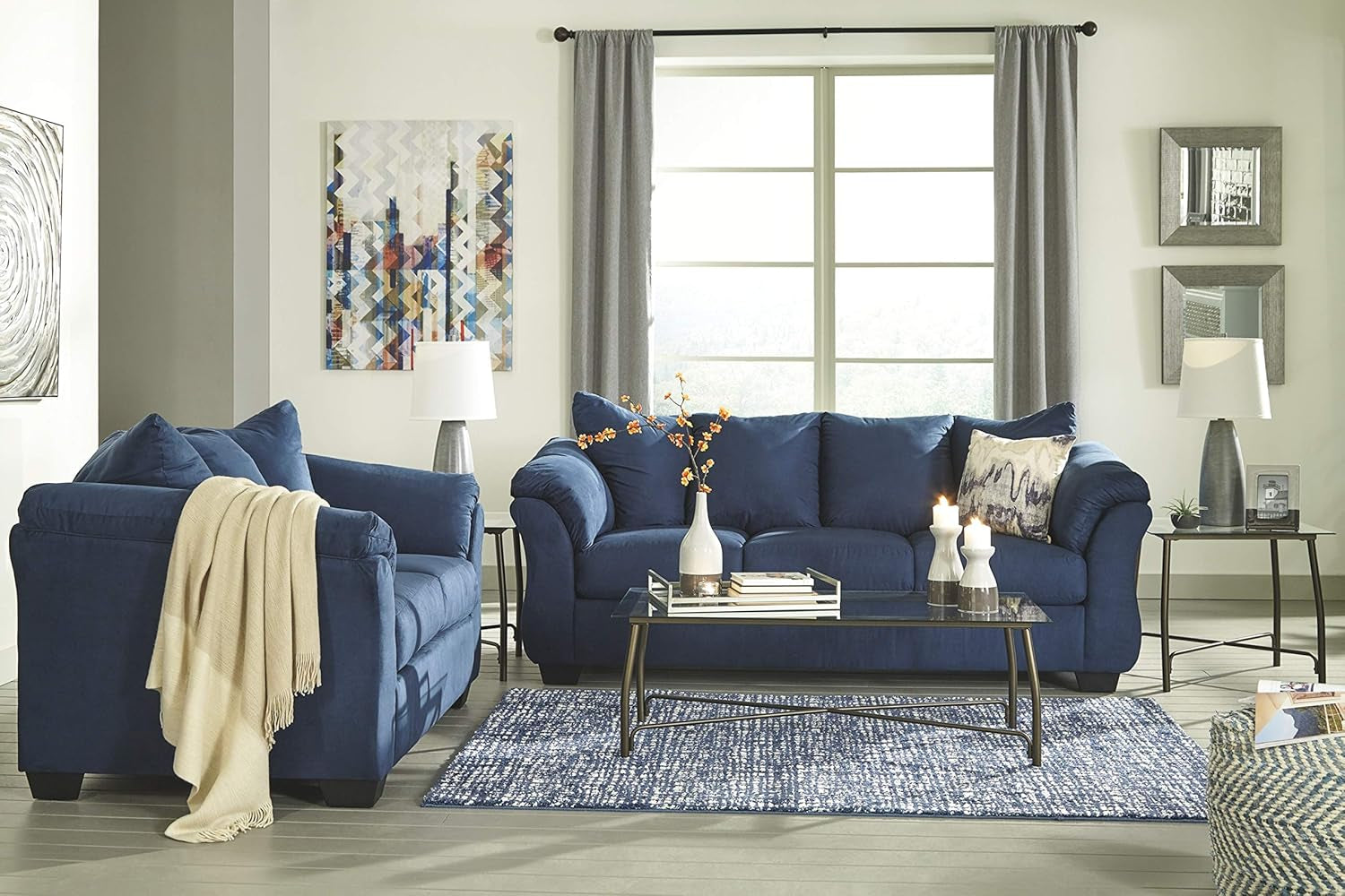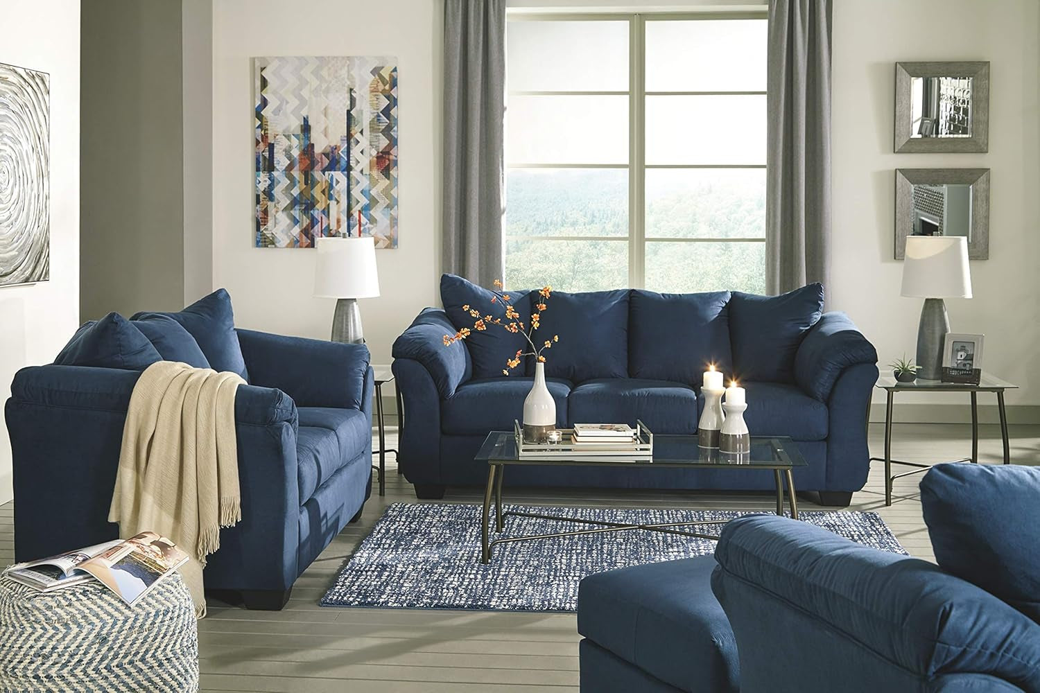 Keywords: loveseat, plush, comfortable, modern design, durable, dark blue, home decor, living room furniture.