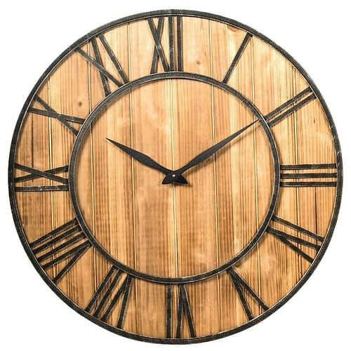 If you are worried that the wall clock in your house will make a lot of noise or you think your wall clock is too ordinary and lacks uniqueness. You can enjoy every minute with this Round Wood 30-inch Roman Numeral Silent Wall Clock. The panel is made of solid thick fir and the metal frame and Roman numerals is durable for long service time. The clock does not have a second hand, so there is no ticking sound during operation.This silent effect will creates quiet environment for your sleeping and working.You only need an AA battery to start the clock, which is very convenient.This wall clock can be easily hung where you like on the wall and the strips at backplay a supporting and reinforcing role. This wall clock has a retro and rustic style that perfectly matches your other decor to create beauty in your home.