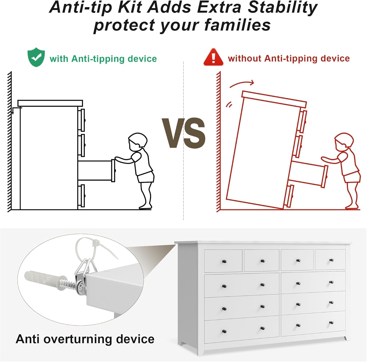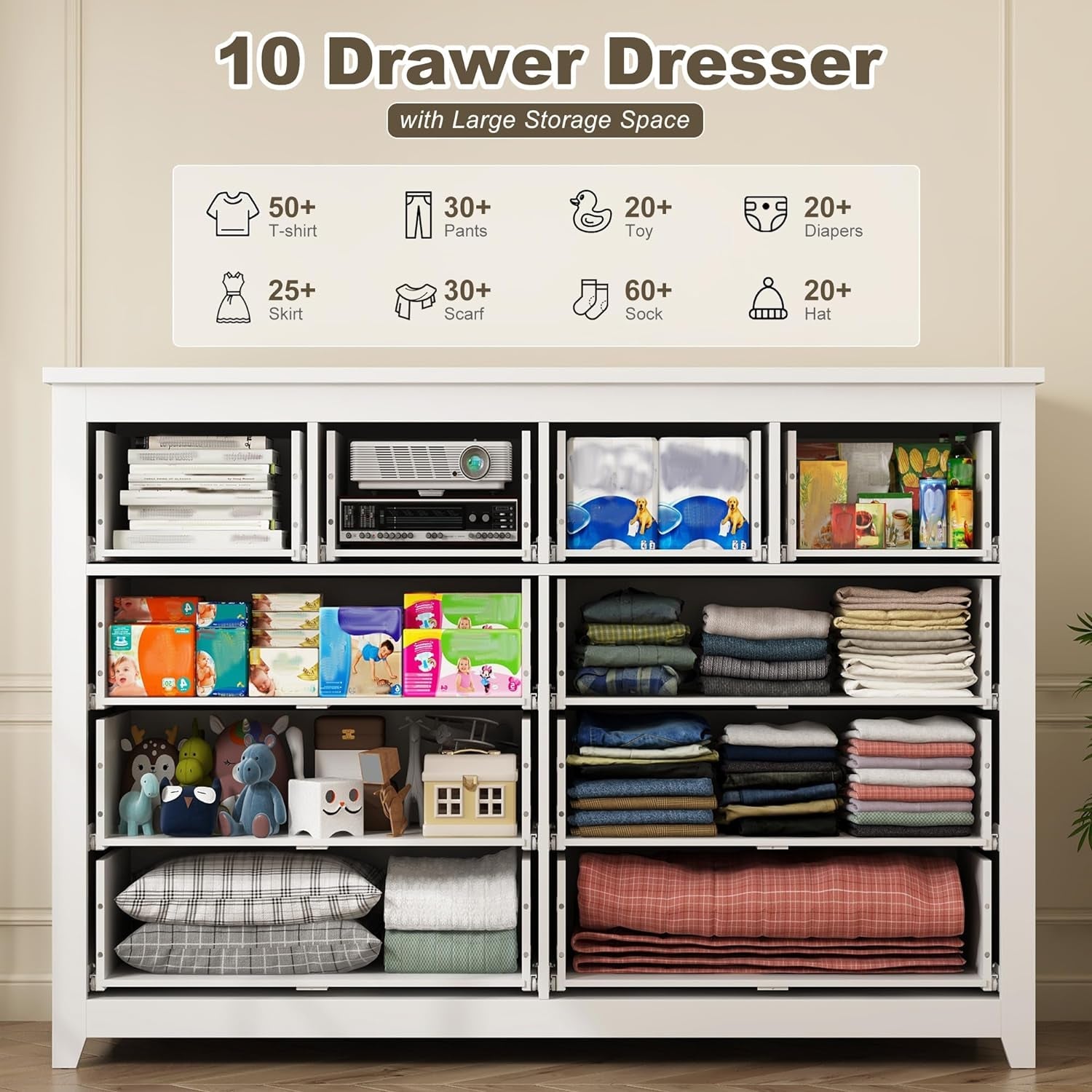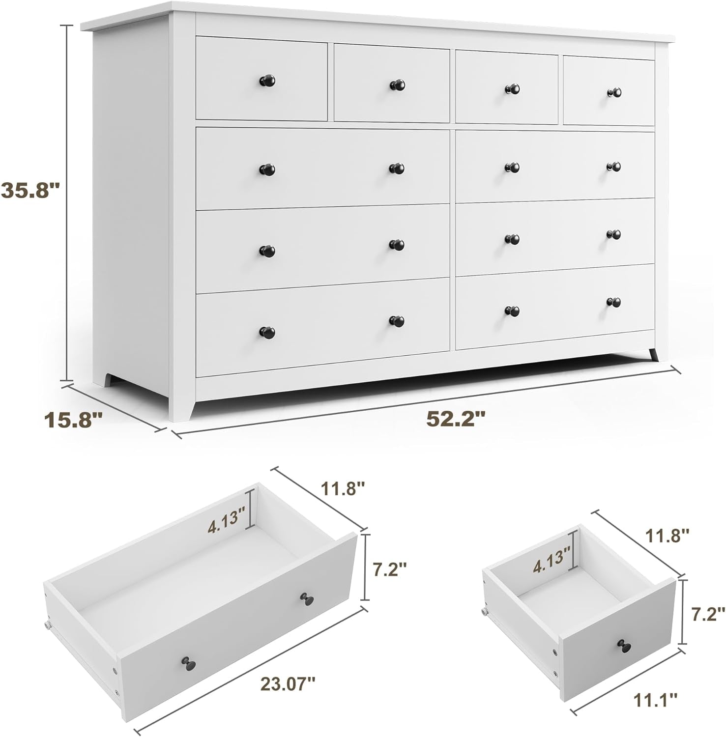 - Ample Storage: This versatile dresser features ten spacious drawers, providing plenty of room to store your clothes, accessories, and other belongings.